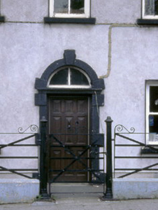 End-of-terrace five-bay two-storey Georgian house, c. 1800, with round-headed block- and-start doorcase. Now in dental surgery use with two-storey return and single- and two-storey outbuildings to rear. Railings to front.