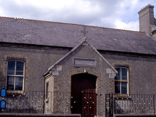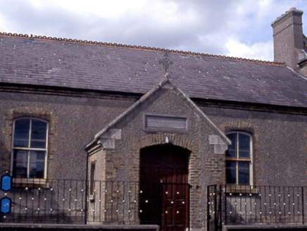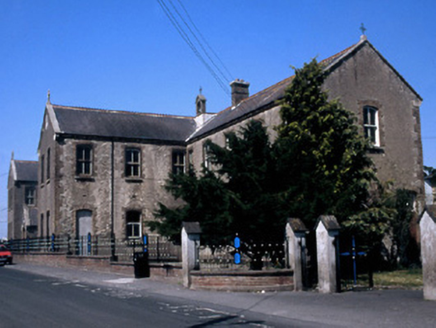 Freestanding five-bay single-storey national school with projecting central gabled enclosed entrance porch, built 1893. Two-bay two-storey gable-fronted wings to both ends and five-bay two-storey extension to east end.