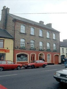 Terraced five-bay three-storey house and licensed premises with integral carriageway arch, rebuilt, c. 1900. Containing fabric of c. 1800. Formerly a hotel with two-storey return and annexed coach house with integral carriageway arch to rear.