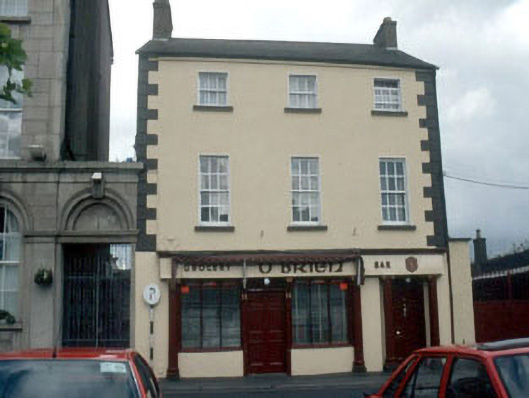 Detached three-bay three-storey double pile house, c. 1820, with licensed premises to ground floor having Ionic shopfront and elliptical-arched fanlit doorcase. Yard to side and rear, roughcast street wall and iron rail gate. Lean-to shed to side, built 1892, and single-storey stock brick outbuildings to rear.
