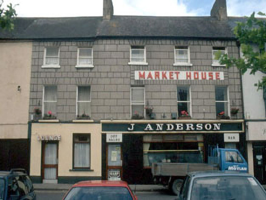 Terraced three-bay three-storey late Georgian house with licensed premises to ground floor, c. 1800, with two- and single-storey rear extensions. Terraced two-bay three-storey house, c. 1800, with two-storey split-level return to rear and licensed premises to ground floor. Annexed together, c. 1958.