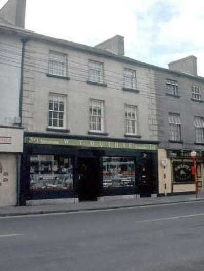 Terraced three-bay three-storey over basement house, c. 1860, with shop to ground floor. Shopfront, c. 1900.