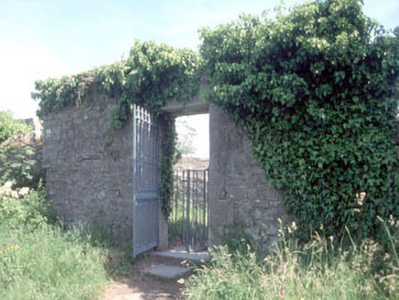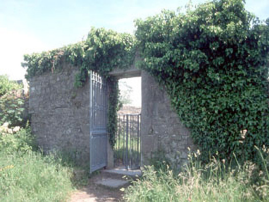 Priory pedestrian gateway, c. 1870, with cast-iron gate. Set in short length of limestone rubble wall with tooled limestone quoins and iron circular stile to south of gateway, c. 1940.