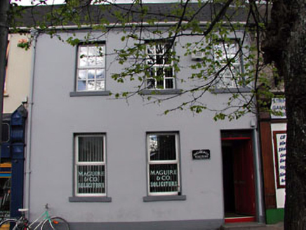 Terraced three-bay two-storey house, c.1800. Extensively renovated, c.1995, to accommodate use as offices. Gable-ended roof. Replacement fibre-cement slate, c.1995. Concrete ridge tiles. Rendered chimney stacks. Replacement uPVC rainwater goods, c.1995, on rendered eaves course retaining original cast-iron hopper and downpipe. Rendered walls (possibly replacement, c.1995). Painted. Square-headed openings. Rendered sills. Replacement uPVC casement windows, c.1995. Replacement timber panelled door, c.1995, with overlight. Road fronted. Concrete flagged footpath to front.
