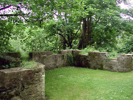 Viewing platform, c.1800, comprising elevated terrace with rubble stone battlemented parapet wall. Set back from road in grounds shared with Leixlip Castle.