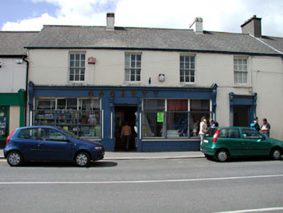 Terraced four-bay two-storey house, built 1818, on a rectangular plan with shopfront to ground floor. Occupied, 1901; 1911. Pitched fibre-cement slate roof with ridge tiles, rendered chimney stacks having rendered capping, and cast-iron rainwater goods on rendered eaves retaining cast-iron octagonal or ogee hopper and downpipe. Rendered, ruled and lined walls on dwarf plinth. Timber shopfront to ground floor on a symmetrical plan centred on timber panelled double doors. Square-headed door opening (north) with threshold, and timber doorcase with panelled pilasters supporting ogee-detailed cornice on "Acanthus" consoles framing glazed timber panelled door. Square-headed window openings (first floor) with sills, and concealed dressings framing six-over-six timber sash windows. Street fronted with concrete flagged footpath to front.