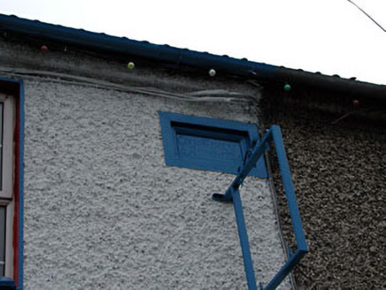 Attached three-bay two-storey house, dated 1724 and 1728, on a rectangular plan originally four-bay two-storey. Renovated, ----. Replacement pitched profiled concrete tile roof with concrete ridge tiles, rendered chimney stack (south) having chamfered capping, and cast-iron rainwater goods on roughcast eaves. Roughcast battered walls on rendered plinth with pair of pair of cut-limestone date stones ("1724"; "1728"). Square-headed central door opening with concealed dressings framing replacement timber panelled door having overlight. Square-headed window openings with flush sills, and concealed dressings framing replacement uPVC casement windows. Street fronted with concrete flagged footpath to front.