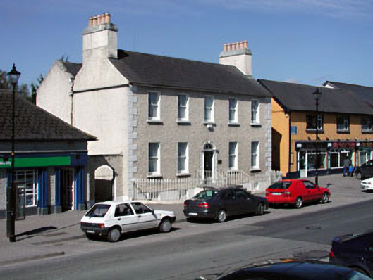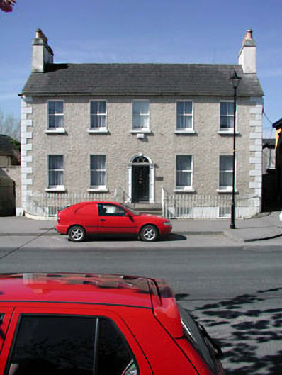 Detached five-bay two-storey over part-raised basement double-pile house, c.1790, retaining early fenestration with round-headed door opening to centre approached by flight of steps. Reroofed, c.1960. Now in part use as offices. Gable-ended double-pile (M-profile) roof. Replacement artificial slate. Concrete ridge tiles. Rendered chimney stacks. Overhanging timber eaves. Replacement iron rainwater goods, c.1960. Roughcast walls. Unpainted. Rendered quoins to corners. Square-headed window openings. Stone sills. 2/2 timber sash windows. Round-headed door opening approached by flight of stone steps. Moulded rendered panelled pilaster surround with entablature. Timber panelled door. Gothic-style fanlight with moulded archivolt having keystone. Set back from road. Sections of iron railings to open basement with Fleur-de-Lys finials.