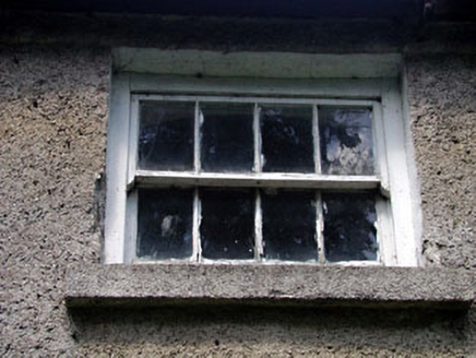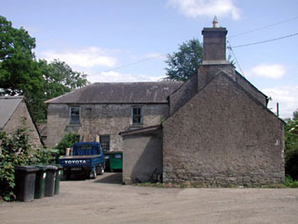 Attached three-bay two-storey former school master’s house, c.1800, retaining original fenestration with single-bay single-storey end bay to left (north-west). Now in private residential use. Gable-ended roofs with slate. Clay ridge tiles. Rendered chimney stacks. Overhanging eaves. Cast-iron rainwater goods. Roughcast walls over rubble stone construction. Unpainted. Square-headed openings. Stone sills. 4/4 and 6/6 timber sash windows. Timber boarded door. Overlight. Set back from road in own grounds. Hedge boundary to front. Attached three-bay two-storey yellow brick former Church of Ireland school, c.1820, to north-east forming L-shaped plan retaining original fenestration. Now in residential use. Hipped roof with slate. Clay ridge tiles. Remains of cast-iron rainwater goods. Yellow brick Flemish bond walls. Square-headed openings. Stone sills. 2/2 timber sash windows with exposed sash boxes. Detached two-bay single-storey rubble stone outbuilding, c.1820, to north-west. Reroofed, c.1940. Gable-ended roof. Replacement corrugated-iron, c.1940. Iron ridge tiles. Rubble stone walls with traces of render over. Square-headed door opening. Red brick surrounds. Remains of timber fittings.