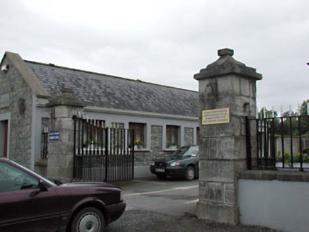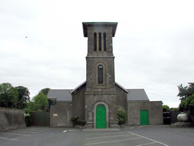 Detached five-bay double-height Catholic church, built 1816, originally on a T-shaped plan comprising three-bay double-height nave with single-bay double-height transepts to north-east and to south-west, single-bay double-height chancel to north-west and single-bay three-stage Italianate entrance tower (1857) on a square plan. Extended, c.1960, comprising single-bay single-storey flat-roofed flanking bay to south-west to accommodate use as hall. Extensively renovated and extended, c.1990, following fire comprising single-bay single-storey flat-roofed flanking bay to north-east. Gable-ended roofs on a T-shaped plan. Replacement artificial slate, c.1990. Concrete ridge tiles. Timber eaves and bargeboards. Replacement uPVC rainwater goods. Shallow pyramidal roof to tower. Replacement artificial slate, c.1990. Overhanging timber eaves. Flat-roofed to additional flanking bays. Bitumen felt. Timber eaves. Rendered walls to nave and to transepts. Ruled and lined. Unpainted. Rendered quoins to corners. Coursed cut-stone walls to tower. Cut-stone dressings including quoins to corners, stringcourses to each stage and consoled frieze to eaves. Rendered walls to additional flanking bays. Unpainted. Lancet-arch openings to nave remodeled, c.1990, to accommodate square-headed openings. Stone sills. Rendered surrounds. Replacement timber casement windows, c.1990. Round-headed openings to tower in recessed panels to first and to second stages (tripartite arrangement to top stage with stringcourse to spring of arches). Stone sills and yellow brick dressings to upper stages. Openings to second stage now blocked-up. Round-headed door opening. Moulded cut-limestone doorcase. Replacement timber paneled double doors, c.1960, with tongue-and-groove timber paneled overpanel. Square-headed openings to additional flanking bays. Timber fittings, c.1990. Full-height interior to nave remodeled, c.1960, with stage inserted to former chancel having transepts in use as wings. Set back from road in own grounds. Tarmacadam forecourt/carpark to front. Gateway, c.1825, to south-east comprising pair of cut-stone piers with profiled cut-stone capping having cast-iron double gates and rendered flanking plinth walls with cast-iron railings over having finials.