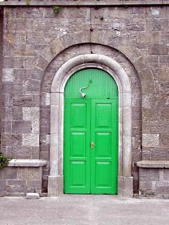 This former Catholic church is a fine and attractive building of considerable social and historic interest as the earliest remaining ecclesiastical centre for the Catholic population of the locality, built shortly before Catholic Emancipation in 1829 – the building continues to serve a community use as a hall-cum-theatre. Unsympathetically extended in the late twentieth century, the additional ranges could easily be removed to restore the original form of the composition. The former church is distinguished by a soaring entrance tower to the south-east, the Italianate style of which is unusual in the region, and which is in contrast with the Gothic appearance of the nave and transepts, suggesting that it was a later addition. The tower is finely detailed, in contrast to the reserved quality of the remainder of the piece, and uses yellow brick and cut-stone dressings to decorative effect – the cut-limestone doorcase is also an attractive feature and is a good example of the quality of stone masonry/craftsmanship practiced in the locality. Extensively renovated in the late twentieth century following a fire, the former church retains little of its original features and materials. The building is attractively set off the line of the road in its own grounds and is announced off the line of Chapel Street by a fine gateway of cut-limestone that is a good example of high quality stone masonry. Well-maintained, the gateway retains early cast-iron gates and railings. The former church is part of a self-contained group of Catholic-related structures, including the two former national schools that frame the entrance to the grounds to south-east (11810005, 57/KD-17-10-05, 57).