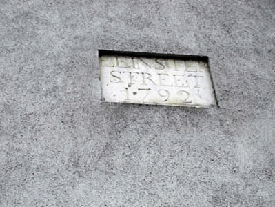 Terraced four-bay three-storey house, dated 1792, with shallow segmental-headed integral carriageway to left ground floor. Extensively renovated, c.1995. Gable-ended roof. Replacement artificial slate, c.1995. Concrete ridge tiles. Rendered chimney stacks. Replacement uPVC rainwater goods, c.1995. Replacement render, c.1995, to walls. Unpainted. Cut-stone date stone/plaque. Square-headed window openings. Replacement concrete sills, c.1995. Replacement uPVC casement windows, c.1995. Square-headed door opening approached by flight of stone steps having cast-iron railings. Replacement timber panelled door, c.1995. Decorative overlight. Shallow segmental-headed integral carriageway to left ground floor. Replacement tongue-and-groove timber panelled double doors. Road fronted. Concrete flagged footpath to front.