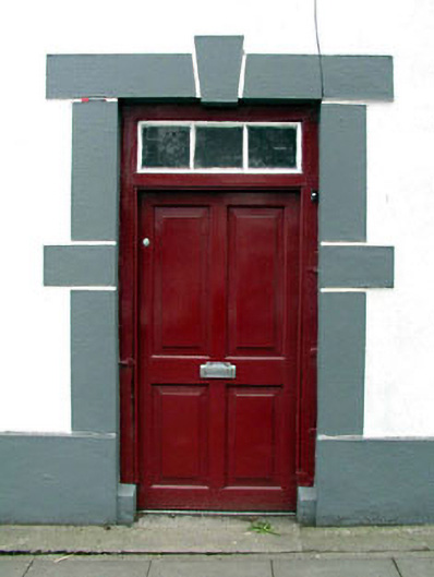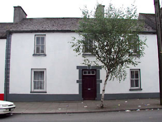 Terraced three-bay two-storey house, extant 1837, on a rectangular plan. In alternative use, 1908. Pitched fibre-cement slate roof with ridge tiles, rendered chimney stacks having concrete capping supporting terracotta pots, and cast-iron rainwater goods on rendered eaves with cast-iron octagonal hopper and downpipe. Rendered walls on rendered plinth with rusticated rendered piers to ends. Square-headed central door opening with rendered block-and-start surround framing timber panelled door having overlight. Square-headed window openings with sills, and concealed dressings framing two-over-two timber sash windows having exposed sash boxes. Street fronted with concrete flagged footpath to front.