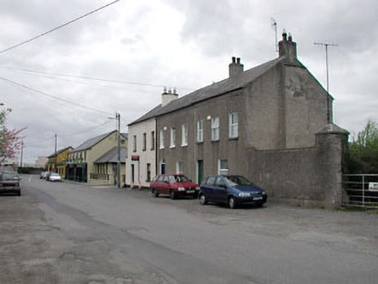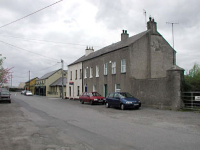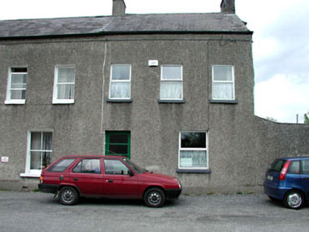 End-of-terrace three-bay two-storey house, c.1880. Refenestrated, c.1995. One of a terrace of three. Gable-ended roof with slate. Clay ridge tiles. Rendered and red brick chimney stacks. Cast-iron rainwater goods. Roughcast walls. Unpainted. Square-headed openings. Stone sills. Replacement uPVC casement windows, c.1995. Replacement glazed timber panelled door, c.1960. Road fronted. Tarmacadam footpath to front.