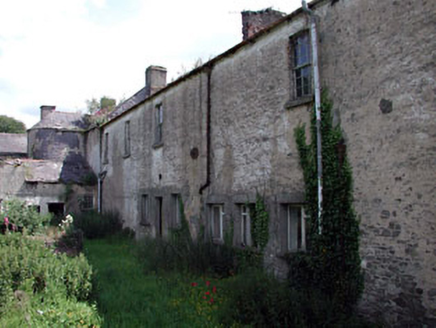 End-of-terrace seven-bay two-storey coach house, c.1820, retaining original fenestration with pair of elliptical-headed integral carriageways to ground floor, tripartite window openings and three-bay single-storey return to rear to north-west. Renovated, c.1980, with some window openings remodelled to ground floor rear (north-west) elevation. Now disused. Hipped roof with slate (gable-ended to return). Clay ridge tiles. Red brick chimney stack. Cast-iron rainwater goods. Roughcast walls over rubble stone construction (mostly exposed construction to rear elevation to north-west). Square-headed openings. Stone sills. 6/6 timber sash windows in tripartite arrangement with 2/2 sidelights. Some openings remodelled, c.1980, to rear elevation with replacement timber casement windows. Elliptical-headed integral carriageways. Tongue-and-groove timber panelled doors. Set back from line of road. Tarmacadam verge to front. Enclosed overgrown grounds to rear to north-west.
