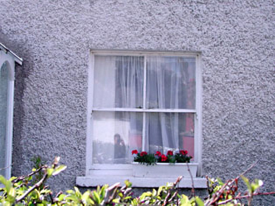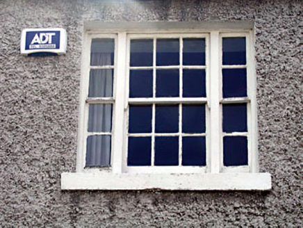 Detached three-bay two-storey former Royal Irish Constabulary barracks, c.1840, with tripartite window openings. Renovated and extended, c.1900, comprising three-bay two-storey parallel range along rear elevation to south-east. Extended, c.1960, comprising single-bay single-storey flat-roofed return to rear to south-east to accommodate residential use. Renovated, c.1980, with single-bay single-storey projecting glazed porch added to centre. Hipped roof with slate (gable-ended to parallel range). Clay ridge tiles. Rendered and roughcast chimney stacks (red brick to parallel range). Cast-iron rainwater goods. Flat-roof to return. Bitumen felt. Hipped to porch. Glazed within timber frame. Roughcast walls. Unpainted. Square-headed window openings. Stone sills. 6/6 timber sash windows (tripartite arrangement to first floor with 2/2 sidelights). Replacement 2/2 timber sash windows, c.1900, to ground floor. Fixed-pane timber windows to porch. Round-headed door opening. Timber doorcase with consoles. Timber panelled door. Decorative fanlight. Set back from road in own grounds. Roughcast boundary wall to front with roughcast piers having iron gate.