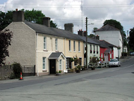 End-of-terrace three-bay two-storey house, c.1810. Reroofed and renovated, c.1980, with single-bay single-storey gabled projecting porch added to centre. Refenestrated, c.1990. Gable-ended roof (gabled to porch). Replacement artificial slate, c.1980. Concrete ridge tiles. Rendered chimney stacks. Timber eaves and bargeboards to porch. Replacement uPVC rainwater goods, c.1990. Roughcast walls. Painted. Rendered stringcourse to first floor. Square-headed openings. Stone sills. Replacement uPVC casement windows, c.1990. Blind opening to centre first floor. Replacement timber panelled door, c.1980.