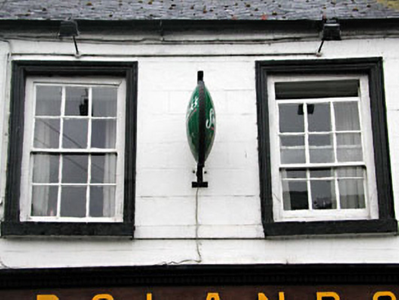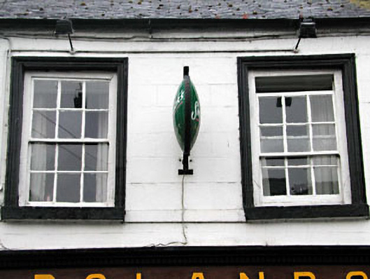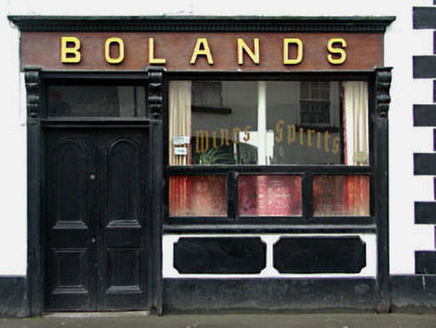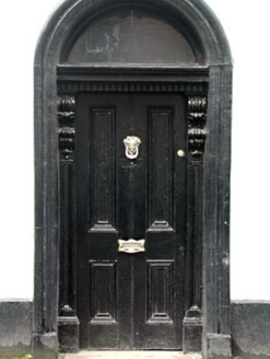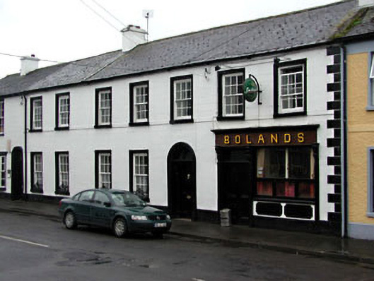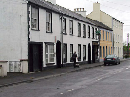 Terraced seven-bay two-storey house, c.1850, originally five-bay retaining early fenestration with round-headed door opening to ground floor. Renovated, c.1900, with timber pubfront inserted to ground floor. Extensively renovated, c.1980, with two-bay two-storey section to left amalgamated from building to south-east. Originally one of a pair. Gable-ended roof with slate (replacement artificial slate, c.1980, to two-bay section to south-east). Clay ridge tiles. Rendered chimney stacks. Rendered coping to gables. Cast-iron rainwater goods on eaves course. Rendered walls. Ruled and lined. Painted. Rendered quoins to end (north-east). Rendered string/sill course to first floor. Square-headed window openings. Stone sills. Moulded rendered surrounds. 6/6 timber sash windows with exposed sash boxes. Round-headed door opening. Moulded rendered surround. Timber pilaster doorcase with consoles and moulded lintel. Timber panelled door. Overlight. Timber pubfront, c.1900, to right ground floor with pilasters having consoles, fixed-pane display window and timber panelled double doors having overlight and timber fascia over with raised lettering and dentilated moulded cornice. Road fronted. Concrete footpath to front.