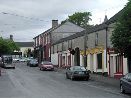 Terraced three-bay two-storey building, c.1890, probably originally outbuilding with elliptical-headed integral carriageway to left ground floor. Renovated and refenestrated, c.1990, with timber shopfront inserted to right ground floor. Hipped roof (shared) with slate. Clay ridge tiles. Cast-iron rainwater goods on rendered eaves courser. Rendered wall to ground floor (possibly replacement). Painted. Roughcast wall to first floor. Unpainted. Square-headed window openings. Rendered sills. Replacement uPVC casement windows, c.1990. Elliptical-headed integral carriageway to left ground floor. Rendered surround. Timber doors. Timber shopfront, c.1990, to right ground floor with pilasters, fixed-pane timber display windows and glazed timber door having timber fascia over with consoles and cornice. Road fronted. Tarmacadam footpath to front.