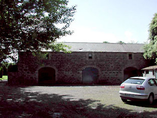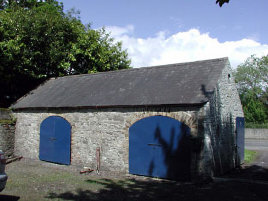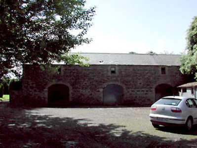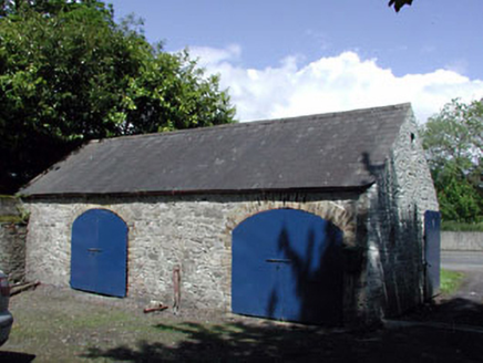 Detached two-bay single-storey rubble stone outbuilding, c.1780, with pair of elliptical-headed integral carriageways. Renovate, c.1990. Gable-ended roof with slate. Clay ridge tiles. Rendered coping to gable to west. No rainwater goods. Random rubble stone walls. Rendered wall to rear (north) elevation. Pair of elliptical-headed integral carriageways. Yellow brick dressings. Replacement iron doors, c.1990. Set in partitioned grounds of Abbey Villa (House) about a courtyard with rear (north) elevation road fronted. Detached three-bay single-storey rubble stone outbuilding with half-attic, c.1850, to south on an L-shaped plan with series of elliptical-headed integral carriageways and four-bay single-storey projecting wing to right (north-west). Renovated, c.1990. Gable-ended roofs with slate. Clay ridge tiles. Remains of cast-iron rainwater goods. Random rubble stone walls. Cast-iron tie plates. Yellow brick walls to wing to north-west. Series of three elliptical-headed integral carriageways to main block. Yellow brick dressings. Replacement iron doors, c.1990. Shallow segmental-headed window openings over. No sills. Yellow brick surrounds. Replacement 1/1 timber sash windows, c.1990. Square-headed openings to wing. Stone sills. Timber fittings (possibly original).
