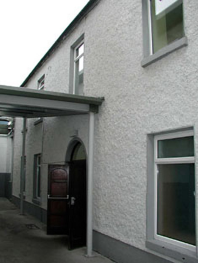 Archival Description [Demolished 2013]: Detached five-bay two-storey house, extant 1778, on an L-shaped plan; single-bay (three-bay deep) two-storey lower return (east). Occupied, 1901-20. Burnt, 1920. Renovated, ----, to accommodate alternative use. Replacement pitched fibre-cement slate roof; replacement pitched fibre-cement slate roof (east), clay ridge tiles, rendered chimney stacks having concrete capping supporting terracotta pots, and cast-iron rainwater goods on rendered eaves with cast-iron downpipes. Roughcast walls bellcast over rendered plinth. Segmental-headed central door opening with concealed dressings framing replacement timber boarded double doors having overlight. Square-headed window openings with sills, and concealed dressings framing replacement uPVC casement windows. Square-headed window openings (east) with sills, and concealed dressings framing replacement uPVC casement windows. Set in redeveloped grounds with roughcast stepped boundary wall to perimeter having concrete coping.