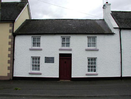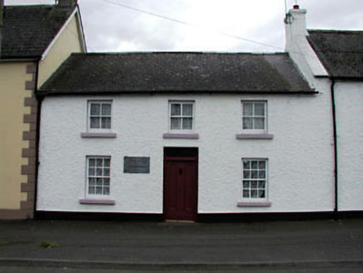 Terraced three-bay two-storey house, c.1770, retaining early fenestration. Gable-ended roof with slate. Clay ridge tiles. Cast-iron rainwater goods. Roughcast walls. Painted. Cut-stone plaque, 1998. Square-headed openings. Stone sills. 6/6 timber sash windows to ground floor. 2/2 timber sash windows to first floor. Timber panelled door. Overlight. Road fronted. Tarmacadam footpath to front.