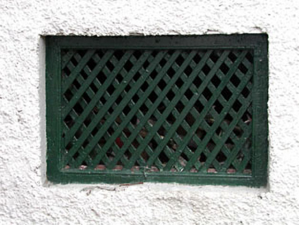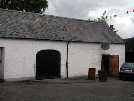 Attached four-bay single-storey outbuilding, c.1790, retaining early aspect with square-headed integral carriageway to left and elliptical-headed integral carriageway to right. Gable-ended roofs with slate. Clay ridge tiles. Cast-iron rainwater goods. Roughcast walls. Painted. Square-headed window opening. No sill. Lattice work timber fitting. Square-headed door opening. Timber boarded door. Square-headed integral carriageway to left. Corrugated-iron double doors. Elliptical-headed integral carriageway to right. Corrugated-iron door. Set back from road in grounds shared with house (11822044/KD-36-22-44).