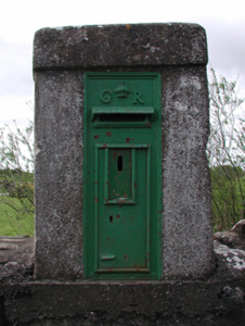 A "wall box" post box supplied by W.T. Allen and Company (fl. 1881-1955) of London representing an interesting example of mass-produced cast-iron work making a pleasing, if largely inconspicuous visual statement in a rural street scene with embellishments identifying the artistic potential of the composition including the King George V (1865-1936; r. 1910-22) royal cipher of additional significance as an imprinted reminder of the period when Ireland formed part of the British Empire.