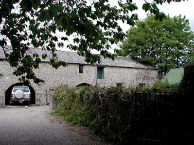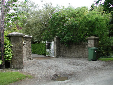Detached five-bay two-storey house, c.1850, with single-bay single-storey flat-roofed projecting porch to front, single-bay two-storey side elevation to east having single-bay single-storey bow bay window to ground floor, and single-bay two-storey return to rear to south. Refenestrated, c.1990. Hipped roof with slate. Clay ridge tiles. Yellow brick chimney stacks. Cast-iron rainwater goods on eaves course. Flat-roof to porch. Materials not visible behind parapet wall. Roughcast walls. Unpainted. Moulded coping to parapet wall to porch. Square-headed window openings (including to bow bay window). Stone sills. Replacement uPVC casement windows, c.1990. Square-headed door opening. Replacement timber panelled door. Set back from road in own grounds. Gravel forecourt to front. Detached six-bay two-storey rubble stone outbuilding, c.1850, to west retaining original aspect with segmental-headed integral carriageways to ground floor. Gable-ended roof with slate. Clay ridge tiles. Cast-iron rainwater goods on eaves course. Random rubble stone walls (with lime render over to side and rear elevations). Repointed, c.1980. Square-headed window openings (slit-style to rear elevation). No sills. Timber fittings. Square-headed door openings (including to first floor). Timber lintels. Timber boarded doors. Segmental-headed integral carriageways to ground floor. Yellow brick voussoirs. Fittings not visible. Gateway, c.1850, to south-east comprising pair of rubble stone piers with rubble stone swept walls having iron gates.