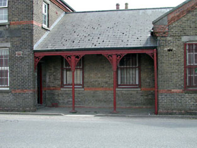 The Curragh Camp Reading and Recreation Rooms building is a fine example of a purpose-built Victorian institutional building. The building is of social and historic interest, representing the continued development of the military camp on the late nineteenth century. Although now disused (having recently served as a canteen and latterly a store room), the building is very well maintained and in good condition. Built on a symmetrical plan the complex and ornate primary elevation is a prominent landmark in the complex and the front elevation is decoratively detailed in a manner that is slightly at odds with the utilitarian function and plan of the building. The construction is distinguished by the use of fine, regular yellow brick dressed with red brick and granite detailing to produce a polychromatic effect fashionable at the time of construction. The building retains most of its original features and materials, including some original fenestration to the range to east, and the re-instatement of timber sash windows would restore an accurate representation of an original aspect. The cast-iron veranda is an attractive feature of artistic distinction and is a good example of early cast-iron work. An integral part of the military camp, the reading and recreation rooms building is prominently sited as a central feature of the complex.