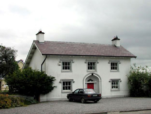 Detached three-bay two-storey Tudor-style former dispensary, c.1900, with pointed-arch door opening to centre and single-bay single-storey return to rear to east. Renovated and extended, c.2000, comprising two-bay two-storey return block to rear to east forming L-shaped plan. Now in residential use. Gable-ended roofs with slate. Concrete ridge tiles. Rendered chimney stacks. Square rooflights, c.2000, to rear to east. Overhanging timber eaves with paired brackets. Iron rainwater goods. Rendered walls. Painted (unpainted to return and to additional return block). Square-headed window openings. Cut-stone sills and architraves to front (west) elevation with hood moulding over. Concrete sills to remainder. 3/3 timber sash windows. Pointed-arch door opening in recessed niche. Rendered surround. Moulded rendered architrave with lintel. Timber panelled door. Decorative fanlight with moulded rendered surround. Set back from road. Gravel verge to front. Enclosed landscaped grounds to rear to east.