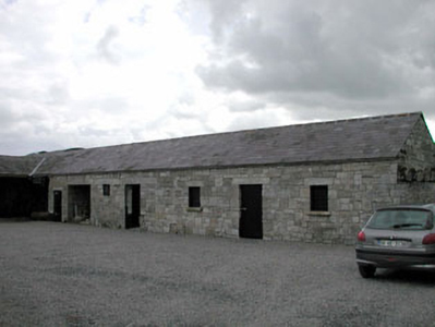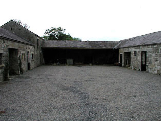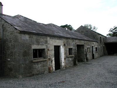 Detached three-bay two-storey former tenant farmer's house, c.1740. Renovated and extended, c.1995, comprising three-bay two-storey parallel range along rear elevation to south forming double-pile with single-bay single-storey end bay to west, two-bay single-storey lean-to return to rear to south and single-bay single-storey gabled projecting glazed porch added to centre front elevation to north. Now in private residential use. Hipped roof (M-profile) (gable-ended to end bay; lean-to to return; gabled to porch). Replacement artificial slate, c.1995. Concrete ridge tiles. Rendered chimney stacks. Timber eaves. Replacement uPVC rainwater goods, c.1995. Snecked limestone walls to original range. Random rubble stone walls to additional ranges. Rendered wall to rear (south) elevation and to end bay. Unpainted. Square-headed window openings. Stone sills (concrete to additional ranges). Cut-stone block-and-start surrounds and voussoirs to original range. Replacement uPVC casement windows, c.1995. Fixed-pane uPVC casement windows to porch. Square-headed door opening. Glazed uPVC door. Set back from road in own grounds. Gravel forecourt to front. Range of detached single- and two-storey rubble stone outbuildings, c.1740, to rear to south on an L-shaped plan about a courtyard comprising: eight-bay single-storey range to east, seven-bay single-storey range to west, three-bay two-storey block to south-west and three-bay single-storey range to south. Gable-ended roofs with slate. Clay ridge tiles. Iron rainwater goods. Snecked rubble stone walls. Square-headed openings (open front to range to south). Stone sills. Cut-granite lintels. Timber fittings.