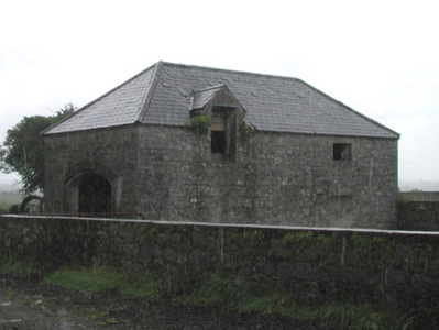 Detached three-bay two-storey over part raised basement farmhouse, extant 1826, on a rectangular plan; three-bay full-height rear (east) elevation. Occupied, 1901; 1911. Hipped slate roof with clay ridge tiles, paired rendered central chimney stacks having cut-granite stepped capping supporting terracotta pots, and cast-iron rainwater goods on rendered cut-granite eaves retaining cast-iron octagonal or ogee hoppers and downpipes. Part creeper- or ivy-covered rendered, ruled and lined walls on lichen-spotted plinth. Segmental-headed central door opening approached by flight of four lichen-spotted cut-granite steps, cut-granite doorcase with engaged columns between engaged pilasters supporting shallow cornice on entablature, and cut-granite surround framing timber panelled double doors having sidelights below fanlight. Square-headed window openings with cut-granite sills, and concealed dressings framing six-over-six (ground floor) or three-over-six (first floor) timber sash windows. Square-headed window openings to rear (east) elevation with cut-granite sills, and concealed dressings framing six-over-six (ground floor) or three-over-six (first floor) timber sash windows centred on three-over-six timber sash window. Interior including (ground floor): central hall retaining carved timber surrounds to door openings framing timber panelled doors; and carved timber surrounds to door openings to remainder framing timber panelled doors with carved timber surrounds to window openings framing timber panelled shutters. Set in landscaped grounds with cut-granite monolithic piers to perimeter having stringcourses below shallow pyramidal capping supporting tubular steel "farm gate".