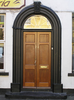 A house representing an important component of the built heritage of Kilkenny with the architectural value of the composition, one repurposing the fabric of earlier houses occupying two burgage plots [SMR KK019-026051-], confirmed by such attributes as the compact rectilinear plan form; the feint battered silhouette; the restrained doorcase showing a looped hub-and-spoke fanlight; the diminishing in scale of the openings on each floor producing a graduated visual impression; and the high pitched roof. Having been reasonably well maintained, the form and massing survive intact together with quantities of the original fabric, both to the exterior and to the interior, including shimmering glass in hornless sash frames: however, the piecemeal introduction of replacement fittings to the openings has not had a beneficial impact on the character or integrity of a house making a pleasing visual statement in High Street. NOTE: The house is shown set back from the line of High Street on "A SURVEY of the CITY of KILKENNY By John Rocque Corrographer" (1758). It was later occupied (1853) by Reverend Henry Hare (----) and valued at £36 0s. 0d. with Dowager Lady Elizabeth Harty (née Davis) (d. 1875) named as "Immediate Lessor" (Primary Valuation of Ireland). The house is labelled as "Saint Mary's Glebe House" on the Ordnance Survey City of Kilkenny Sheet XIX.47 (1871) but by then was said to have been occupied by the author Michael Banin (1796-1874) who had achieved a degree of literary fame with "Crohoore of the Bill-Hook" (1825): Banin was the postmaster of Kilkenny (appointed 1852; retired 1873) and the forecourt, previously railed, is still sometimes known as Post Office Square (Phelan and Lanigan 1961, 36).