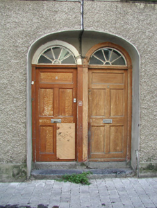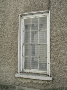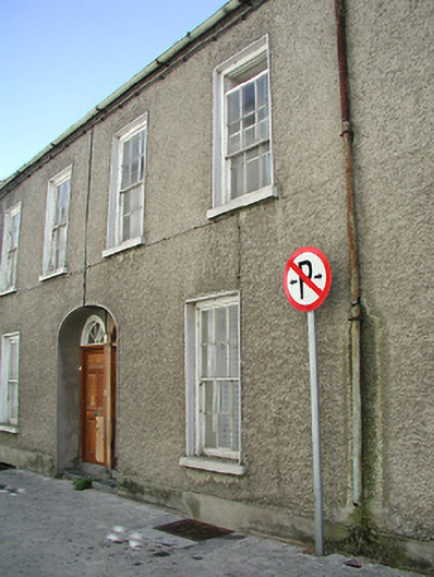 Terraced two-bay two-storey over basement house, c.1800. One of a pair. Pitched (shared) slate roof with clay ridge tiles, rendered chimney stack, and cast-iron rainwater goods on rendered eaves. Unpainted roughcast walls. Square-headed window openings with cut-stone sills, and six-over-six timber sash windows. Round-headed door opening in shared elliptical-headed recess with two cut-limestone steps, and timber panelled door having fanlight. Interior with timber panelled shutters to window openings. Road fronted with concrete footpath to front.