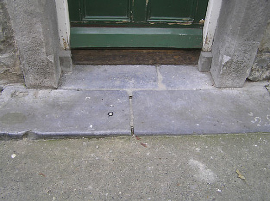Semi-detached three-bay three-storey almshouse, built 1820, on a T-shaped plan centred on single-bay full-height pedimented breakfront; three-bay three-storey rear (north) elevation. Occupied, 1901; 1911. Now disused. One of a pair. Hipped slate roof on a T-shaped plan centred on pitched (gabled) slate roof (breakfront), ridge tiles, paired rendered central chimney stacks having capping supporting terracotta pots, and cast-iron rainwater goods on cut-limestone eaves retaining cast-iron downpipes. Part creeper- or ivy-covered broken coursed rubble limestone walls originally lime rendered with cut- or hammered limestone flush quoins to corners. Square-headed central door opening in full-height round-headed recess approached by flight of five cut-limestone steps, limestone ashlar voussoirs framing timber panelled door having overlight. Square-headed window opening (half-landing) with cut-limestone sill, and cut-limestone voussoirs framing timber casement window. Square-headed window openings with cut-limestone sills, and cut-limestone voussoirs framing timber casement windows. Elliptical-headed central door opening to rear (north) elevation with limestone flagged threshold, and drag edged tooled cut-limestone surround having chamfered reveals with hood moulding framing timber panelled door. Square-headed window openings (upper floors) with cut-limestone sills, and cut-limestone voussoirs framing timber casement windows including timber casement windows having cast-iron lattice glazing bars (top floor). Interior including (ground floor): central hall retaining staircase on a dog leg plan with timber balusters supporting timber banister. Set in unkempt grounds shared with Saint Mary's Church (Saint Mary's).