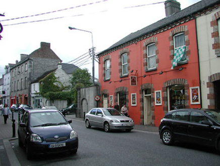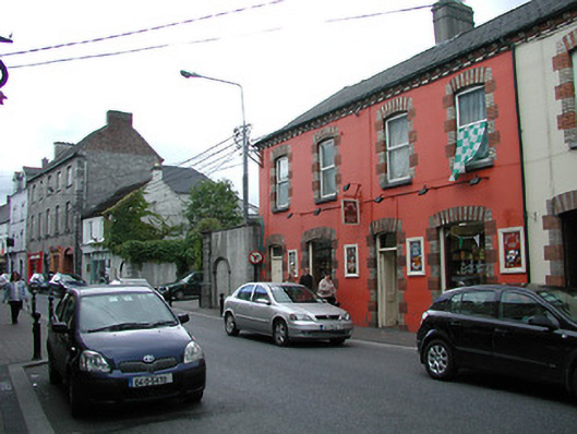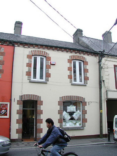 Terraced two-bay two-storey house, built 1893. Mostly refenestrated. Now in commercial use to ground floor. One of a group of three. Pitched (shared) slate roof with clay ridge tiles, rendered (shared) chimney stack, and cast-iron rainwater goods on rendered eaves having consoles. Painted rendered, ruled and lined walls. Camber-headed window openings (originally in bipartite arrangement to ground floor) with cut-stone sills, red and yellow brick block-and-start surrounds, and replacement fixed-pane timber window to ground floor having replacement timber casement windows to remainder. Camber-headed door opening with red and yellow brick block-and-start surround, and replacement diagonal tongue-and-groove timber panelled double doors having overlight. Road fronted with concrete brick cobbled footpath to front.
