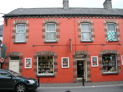 Terraced two-bay two-storey house, built 1893. Mostly refenestrated. Now in commercial use to ground floor. One of a group of three. Pitched (shared) slate roof with clay ridge tiles, rendered (shared) chimney stack, and cast-iron rainwater goods on rendered eaves having consoles. Painted rendered, ruled and lined walls. Camber-headed window openings (originally in bipartite arrangement to ground floor) with cut-stone sills, red and yellow brick block-and-start surrounds, and replacement fixed-pane timber window to ground floor having replacement uPVC casement windows to remainder. Camber-headed door opening with red and yellow brick block-and-start surround, and timber panelled double doors having overlight. Road fronted with concrete brick cobbled footpath to front.