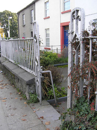 Terraced two-bay two-storey house, c.1850. Renovated, c.1975, with opening to left ground floor remodelled to accommodate shallow canted bay window. Reroofed and refenestrated. One of a group of seven. Pitched (shared) roof with replacement artificial slate, clay ridge tiles, rendered chimney stack, slightly sproketed eaves, and iron rainwater goods on rendered eaves. Painted rendered, ruled and lined walls. Square-headed window openings (remodelled to left ground floor, c.1975, to accommodate shallow canted bay window) with cut-stone sills (replacement concrete sill, c.1975, to remodelled opening having rendered concrete lintel), and replacement uPVC casement windows. Square-headed door opening with replacement glazed uPVC panelled door having overlight. Set back from line of road with sections of iron railings to forecourt on random rubble stone plinth having open work piers with iron gate.