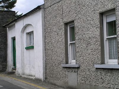 Attached two-bay single-storey gate lodge, extant 1871, on a square plan. Now disused. Hipped and pitched slate roof with clay or terracotta ridge tiles, rendered chimney stack (east) having rendered capping supporting terracotta or yellow terracotta tapered pots, and cast-iron rainwater goods on rendered eaves. Rendered walls. Square-headed door opening (north) with two cut-limestone steps, and concealed dressings framing timber boarded door. Square-headed window opening in segmental-headed recess (south) with sill, and concealed dressings framing timber casement window. Lane fronted at entrance to grounds of Evans' Asylum.