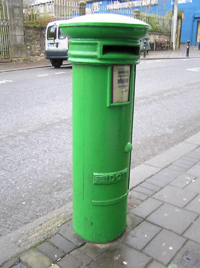 Freestanding cast-iron pillar post box, c.1925, with applied plaque having raised lettering, moulded necking, and moulded shallow domed capping. Road fronted on concrete brick cobbled footpath.