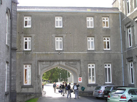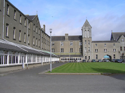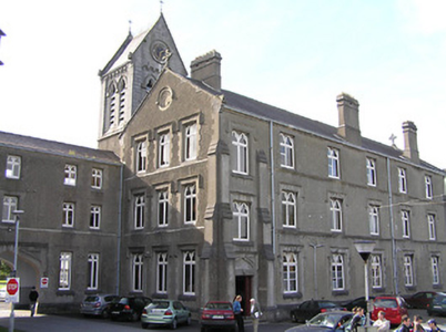 Attached six-bay three-storey building, built 1875-7, with three-bay three-storey side elevations having single-bay four-stage gabled tower to west on a square plan leading to four-bay three-storey lower linking range to south having Tudor-headed carriageway to ground floor. Pitched slate roofs with decorative clay ridge tiles (decorative iron ridges to tower), rendered chimney stacks having cut-limestone chamfered coping, cut-limestone coping to gables having cross finials to apexes, and cast-iron rainwater goods on moulded cut-stone eaves (on limestone ashlar eaves to tower having consoles forming console table). Unpainted fine roughcast walls with unpainted rendered dressings including stepped buttresses (clasping to corners leading to quoins to corners) having cut-limestone coping, moulded stringcourses to each floor, quatrefoil panel to gable in round recess having rendered surround with hood moulding over, limestone ashlar walls to top (bell) stage to tower on chamfered course having advanced corner piers, and cast-iron clock faces to gables having carved limestone surrounds. Square-headed window openings in bipartite arrangement with cut-limestone chamfered sills, rendered block-and-start surrounds having hood mouldings over, and timber casement windows having trefoil overlights. Paired trefoil-headed openings to top (bell) stage to tower with hood mouldings over, and louvered panel fittings. Square-headed door opening with two cut-limestone steps, rendered surround having chamfered reveals, timber panelled door having sidelights on panelled risers, Tudor-headed recessed panel over having chamfered reveals, and hood moulding over. Tudor-headed carriageway to ground floor linking bay with rendered block-and-start surround having chamfered reveals, and hood moulding over. Set back from road in grounds shared with Saint Kieran's College. (ii) Attached seventeen-bay three-storey building, dated 1933, to north enclosing courtyard with three-bay three-storey gabled breakfront, and seventeen-bay single-storey lean-to projecting glazed range along ground floor. Pitched slate roof (gabled to breakfront) with decorative clay ridge tiles, rendered chimney stacks having cut-limestone chamfered coping, cut-stone coping to gable having cross finial to apex, and cast-iron rainwater goods on moulded cut-limestone eaves. Lean-to slate roof to projecting range with fixed-pane rooflights in iron frame, and cast-iron rainwater goods on timber eaves. Unpainted roughcast walls with rendered quoins to corners, and quatrefoil date stone panel to gable in round recess having rendered surround with hood moulding over. Camber-headed window openings to first floor with square-headed window openings to top floor having cut-limestone sills, and three-over-three timber sash windows having overlights. Square-headed openings to projecting range with cut-limestone sills, fixed-pane timber windows having overlights, and glazed timber panelled doors on cut-limestone steps having overlights.