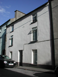 Terraced three-bay three-storey house, c.1800. Reroofed, c.1975. Refenestrated, pre-1992. Pitched roof with replacement artificial slate, c.1975, clay ridge tiles, rendered and red brick Running bond (shared) chimney stacks, and cast-iron rainwater goods on rendered eaves. Painted rendered, ruled and lined walls. Square-headed window openings with cut-limestone sills, and replacement uPVC casement windows, pre-1992. Square-headed door opening with replacement glazed timber panelled door, c.1975. Road fronted with concrete footpath to front.