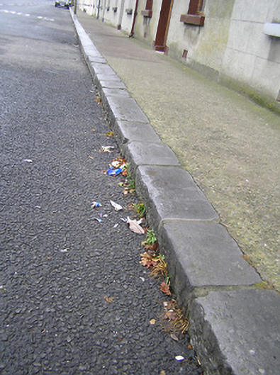 Section of cut-limestone kerbing, c.1925. Road fronted.