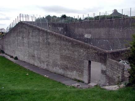 A pair of handball alleys representing an element of the cultural nation-building of the early Irish Republic while forming part of the vernacular heritage of County Kilkenny on account of the status as a building type indigenous to Ireland. Imbued with a pared-down functional, almost Brutalist quality the handball alleys make a distinct impression in the streetscape of Water Barrack.