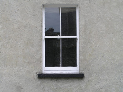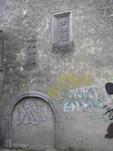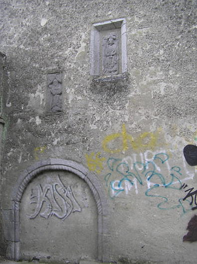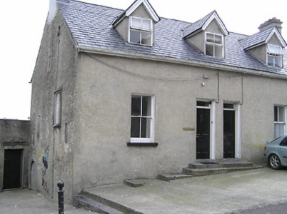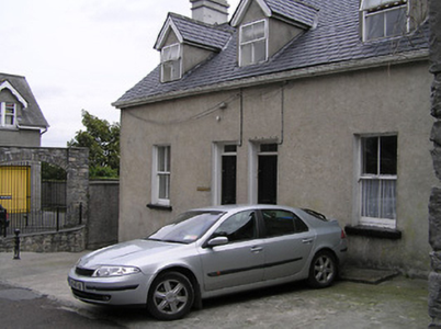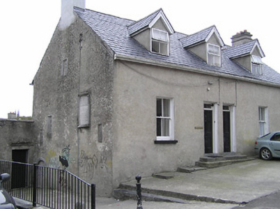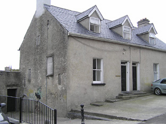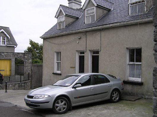 Semi-detached single-bay single-storey over basement house with dormer attic, reconstructed 1882, incorporating fabric of medieval procurator's or sexton's house, c.1525. Extensively renovated, pre-1992. One of a pair. Pitched (shared) roof (gabled to dormer attic windows) with replacement slate, pre-1992, clay ridge tiles, rendered chimney stacks, timber bargeboards to dormer attic windows, and replacement uPVC rainwater goods, pre-1992, on timber eaves. Unpainted replacement cement rendered walls, pre-1992, with salvaged cut-limestone fragments, c.1525, to side (east) elevation including surround having moulded reveals continuing into rope twist reveals, figurative panels (some having surrounds with chamfered reveals), and inscribed plaque having moulded surround. Square-headed window openings with cut-stone sills, and two-over-two timber sash windows having replacement timber casement windows, pre-1992, to dormer attic. Square-headed door opening with three cut-limestone steps, and timber panelled door having overlight. Road fronted.