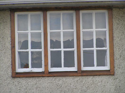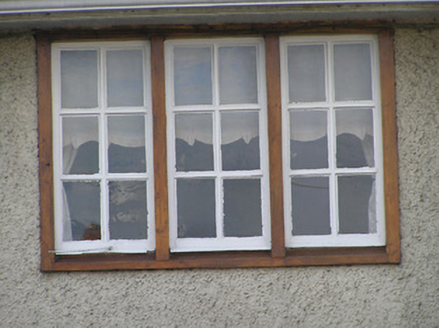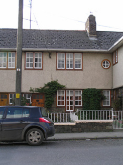 Terraced two-bay two-storey Royal Irish Constabulary officer's house, built 1913, with single-bay single-storey lean-to advanced porch to right ground floor. Now in private residential use. One of a pair forming part of a group of four houses on a U-shaped plan. Pitched (shared) artificial slate roof with clay ridge tiles, red brick Running bond chimney stack, and cast-iron rainwater goods on overhanging timber eaves. Random rubble stone wall to ground floor with painted roughcast wall to first floor (brought forward forming lean-to to porch). Square-headed window openings in bipartite or tripartite arrangement (stepping down to central opening to ground floor) with yellow brick sills to ground floor supporting yellow brick block-and-start surrounds, timber surrounds to remainder, and timber casement windows. Square-headed door opening with glazed tongue-and-groove timber panelled door. Set back from road with wrought iron railings to shared forecourt having wrought iron gate.