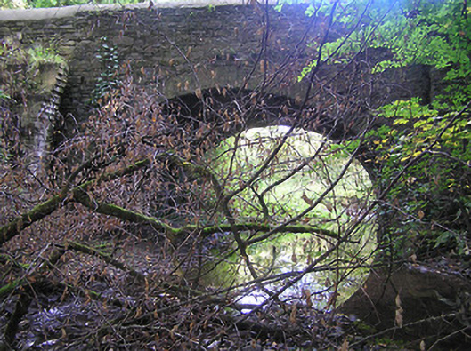 Originally forming an integral component of the Castlecomer House estate an elegantly-appointed modest-scale bridge makes a dramatic visual impression rising above a tributary of the Dinin River. Exhibiting a traditional construction in unrefined locally-sourced stone with barely-dressed accents the bridge integrates pleasantly into the surrounding semi-rural landscape.