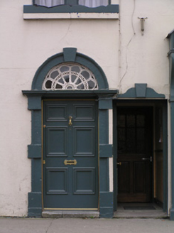 Terraced four-bay two-storey house, dated 1913, possibly incorporating fabric of earlier house, pre-1840, with square-headed carriageway to left ground floor. Renovated, pre-2000, with replacement pubfront inserted to right ground floor. Pitched artificial slate roof with clay ridge tiles, red brick Running bond chimney stacks, and iron rainwater goods on rendered eaves. Painted rendered, ruled and lined walls. Square-headed window openings in bipartite arrangement (tripartite arrangement to ground floor) with painted sills, and one-over-one timber sash windows. Round-headed door opening with painted cut-stone Gibbsian surround, and timber panelled door having peacock-tail fanlight. Replacement timber pubfront, pre-2000, to right ground floor with inscribed pilasters, fixed-pane timber window on panelled stall riser having casement overlights, fascia having profiled consoles, and moulded cornice. Square-headed door opening inserted to ground floor, pre-2000, with rendered dressing including keystone, and timber panelled door. Square-headed carriageway to left ground floor with painted rendered 'Gibbsian' surround having date stone/keystone, and timber boarded double doors. Road fronted with concrete footpath to front.