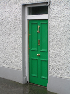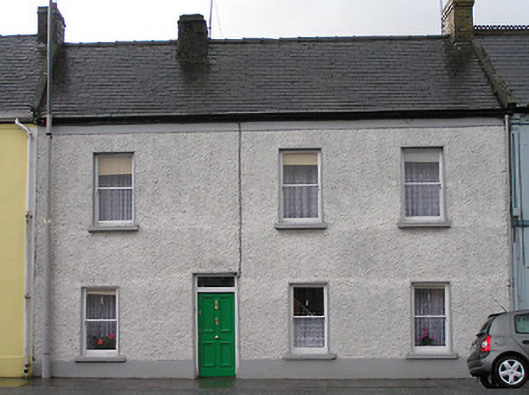 Terraced four-bay two-storey house, c.1825, possibly originally four-bay single-storey. Refenestrated, c.1925. Pitched slate roof with clay ridge tiles, roughcast and yellow brick Running bond chimney stacks, rendered coping to party walls, and cast-iron rainwater goods on rendered eaves. Painted roughcast walls with rendered band to eaves. Square-headed window openings with cut-limestone sills, and replacement one-over-one timber sash windows, c.1925. Square-headed door opening with timber panelled door having overlight. Interior with timber panelled shutters to window openings. Road fronted with concrete footpath to front.
